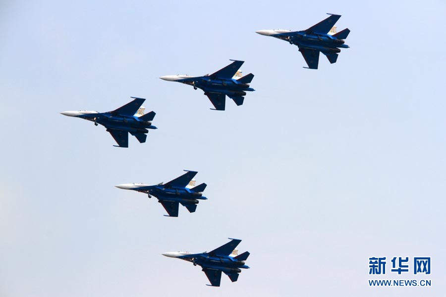 11月12日,中国航展进入第二天,俄罗斯勇士飞行表演队正在进行飞行表演。杨雷 摄