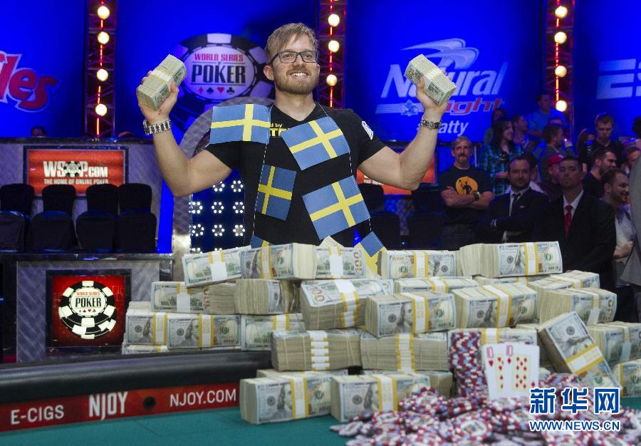 11月11日,马丁·雅各布松在比赛中。当日,在美国拉斯维加斯进行的2014世界扑克系列赛中,27岁的瑞典选手马丁·雅各布松击败挪威选手费利克斯,夺得1千万美元的奖金。新华社/路透