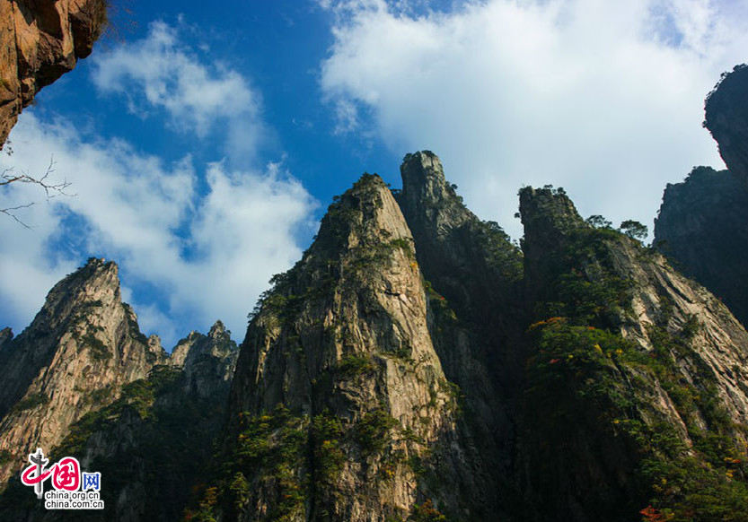 黄山山风微微扬起,落叶飞舞翩翩,如一只只稚嫩的雏鸟离开家奔向梦的远方。薄雾低徊,轻烟迷离,莫名的就唤起心中一缕淡淡的哀愁。鸟鸣水潺,枝蔓叶繁,萧索从来就不属于黄山的秋天,不是春的繁花似锦,但勃勃生机也不曾见逊色分厘。也许心中早已将黄山描绘了千百遍,可身处之中方知原来黄山美的尽在意料之外。(张梦颖)