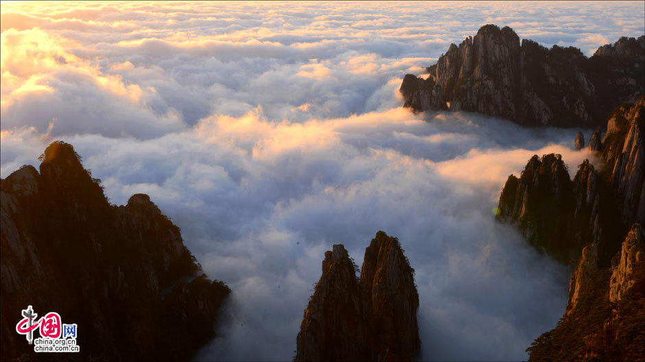 “天宇雄浑之奇特景象”云海是冬游黄山的又一大奇观。