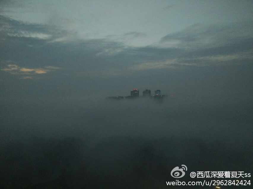 四川新闻网记者注意到,继11月11日“雾造仙境”后,今天早晨成都再现“天空之城”。从高层俯瞰,城市陷入在云雾缭绕中,仅有稍高的建筑顶尖以及塔吊探出云端。