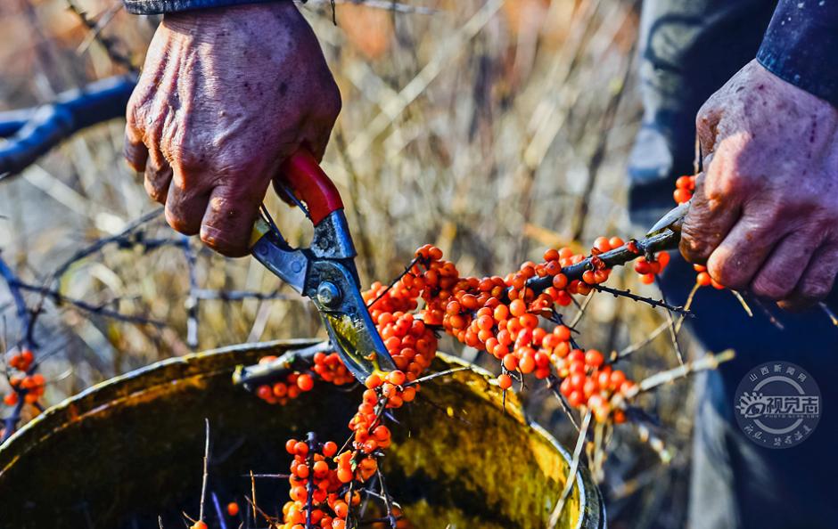 沙棘杆上有刺,王怀珍手被划伤是经常的事。图片来源:山西新闻网