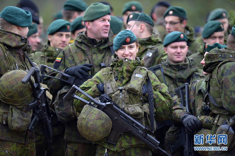 11月13日,在立陶宛帕布拉德,立陶宛士兵参加演习。当日,立陶宛举行“铁剑2014”军演媒体开放日训练。“铁剑2014”多国军演于11月2日至13日在立陶宛举行,来自美国、英国、德国、立陶宛、匈牙利等9个北约成员国的2500余名士兵参加演习。新华社发(阿尔弗雷达斯·普里亚迪斯摄)