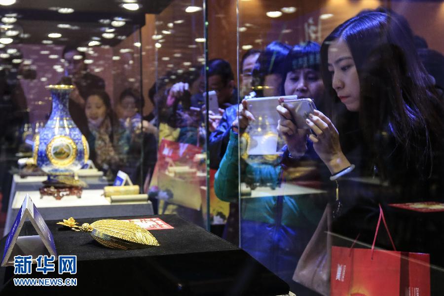11月14日,与会嘉宾在发布会上参观APEC国礼《繁花》手包套装。当日,北京工美集团三款APEC国礼公开亮相并发布典藏版,三款国礼典藏版将各限量发行8000套。刚刚结束的2014年APEC会议的三件国礼均出自北京工美集团,分别是:领导人礼品《四海升平》景泰蓝赏瓶,领导人配偶礼品《繁花》手包套装、《和美》纯银丝巾果盘,展示出了中国传统工艺璀璨的魅力,承载着中华民族文化精神。根据国际惯例,历年度亚太经合组织东道主领导人及配偶,都要为参加APEC的各经济体领导人及配偶,赠送体现本地历史文化或代表本地自然风貌的特色纪念礼品。新华社记者 张玉薇 摄