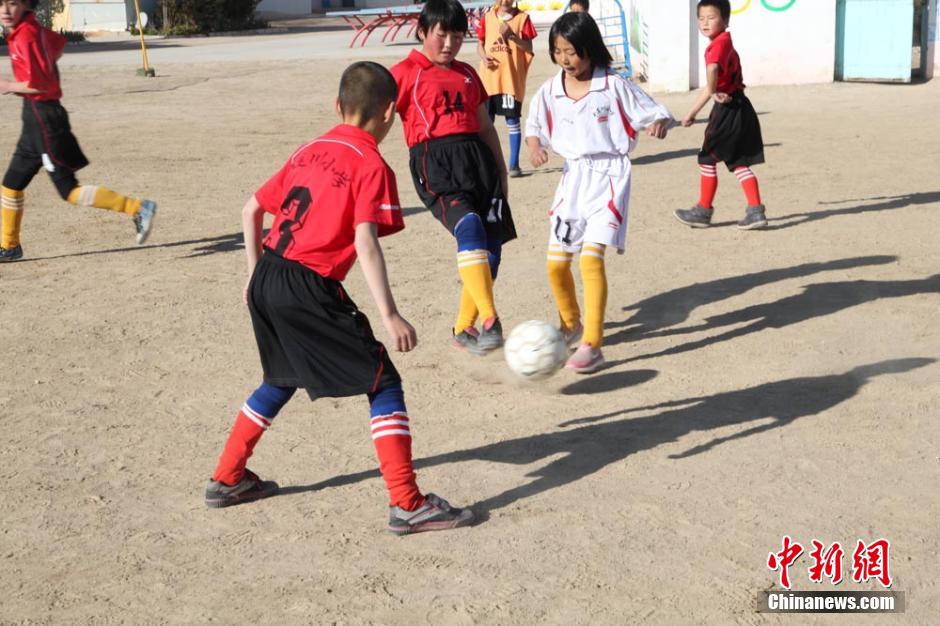 在甘肃榆中县中连川小学,这里的学生在生着火炉的教室上课,在黄土飞扬的操场踢足球,到千米深的山沟里去捡球。没有餐桌,他们在宿舍站着吃饭;没有淋浴,在球场上汗水湿透衣衫,他们没法洗澡。就在这样的一所学校里,却有一支让皇马都亲睐的足球队。该所小学位于榆中北山深处,自然条件艰苦。因为山里孩子身体素质好,能吃苦耐劳,球技水平较高而被恒大皇马足球学校选中,其中一名学生因为家境困难,足球水平优秀,而被免去55000元的学费。刘玉桃 摄