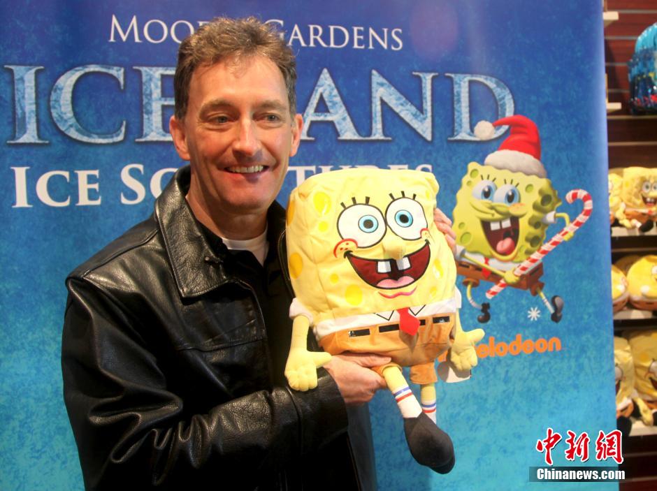 当地时间11月14日,美国著名卡通形象海绵宝宝的水下世界以冰雕形式再现。美国南部海湾滨海地区唯一冰雕展“冰雪海岛”,将于11月15日至2015年1月首次与美国南部地区的观众见面。来自中国哈尔滨、在国际上广受赞誉的31位冰雕艺术家于得克萨斯州加尔维斯顿岛穆迪花园进行了45天创作,在2.8万平方英尺的低温帐篷中将900吨冰转化为高大、绚丽的艺术作品,呈现给大家一个独特的梦幻的冰雪世界。在得州度过一个冰雪圣诞将不再是件意想天开的事。中新社发 王欢 摄