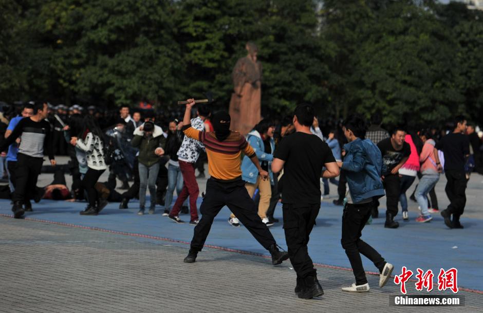11月13日下午,四川乐山市为有效打击各类暴力恐怖活动,提升处置能力,武警、公安、消防、卫生等联合举行“综合反恐防暴”演练。此次演练目的,是检验各兵种间的配合、快速处置等能力,形成全社会共同参与反恐防暴工作的局面。刘忠俊 摄