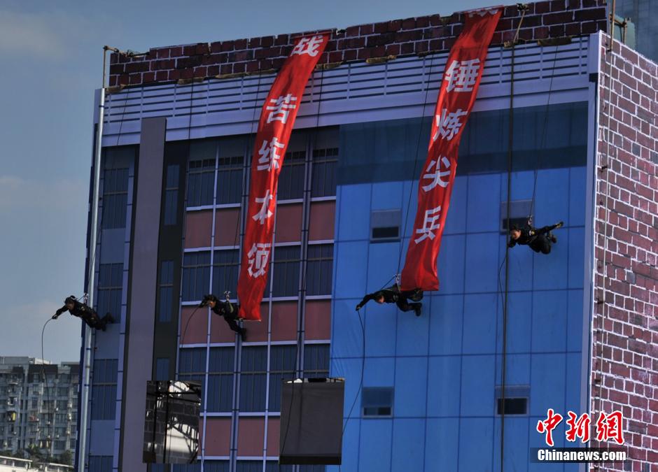 11月13日下午,四川乐山市为有效打击各类暴力恐怖活动,提升处置能力,武警、公安、消防、卫生等联合举行“综合反恐防暴”演练。此次演练目的,是检验各兵种间的配合、快速处置等能力,形成全社会共同参与反恐防暴工作的局面。刘忠俊 摄