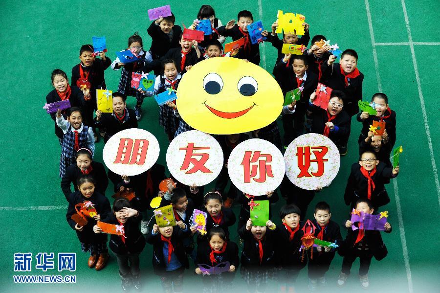 11月20日,合肥少儿艺术学校的学生手持自制的卡通笑脸和问候卡,表达祝福,传递温情。当日,在11月21日“世界问候日”前夕,合肥市少儿艺术学校开展“一声问候,传递温暖”主题教育活动,通过制作问候卡片、开展主题班会等形式营造互相问候的氛围,希望每个人把微笑留在脸上,把真情送给身边人。新华社记者 杜宇 摄