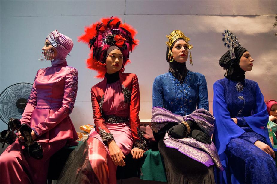 一年一度的伊斯兰时装节在马来西亚首都吉隆坡举行,模特们在时装秀幕后。