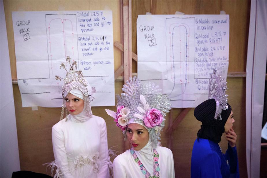 一年一度的伊斯兰时装节在马来西亚首都吉隆坡举行,模特们在时装秀幕后。
