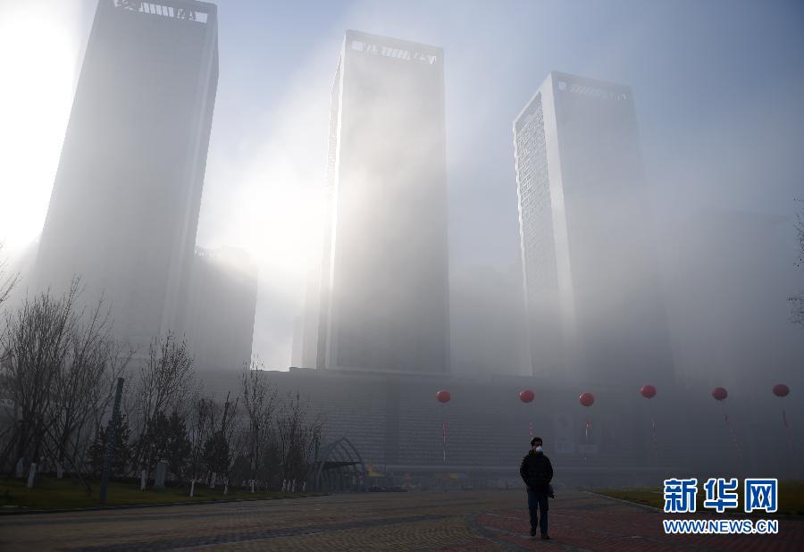 11月21日,在沈阳街头,一名行人在雾霾中出行。从21日早间开始,辽宁大部分地区出现了今年以来最严重的雾霾天气,能见度最低不足20米。受其影响,辽宁境内21条高速公路全线或部分路段封闭。辽宁省气象预警中心连续发布4次大雾红色预警和10次橙色预警。新华社记者 李钢摄