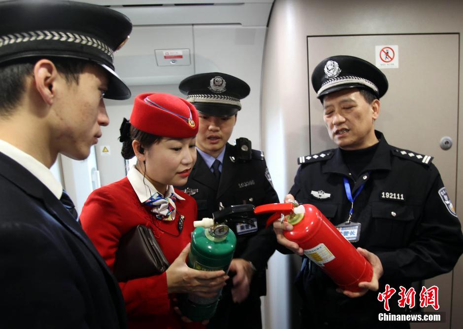 11月20日是武汉铁路公安局乘警张东贺60岁的生日,他在这特殊的日子值乘高铁G1119次列车,执行完这趟最后一班任务后,他将正式退休。尽管没有庆功宴,也没有太多的关注与掌声,但这平凡的最后这一天班,正是老张最想要的退休礼物。张东贺于1980年参加公安工作,1988年6月被调到乘警队,从警至今已30余年,期间在许多列车线路上执行过值乘任务,足迹遍布全国各地。图为武汉开往广州南的G1119次旅客列车上,张东贺(右)、乘警杨光和列车长董娇开展消防安全检查。 中新社发 赵军 摄