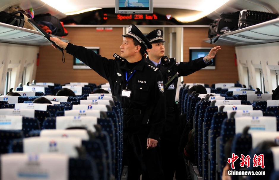 11月20日是武汉铁路公安局乘警张东贺60岁的生日,他在这特殊的日子值乘高铁G1119次列车,执行完这趟最后一班任务后,他将正式退休。尽管没有庆功宴,也没有太多的关注与掌声,但这平凡的最后这一天班,正是老张最想要的退休礼物。张东贺于1980年参加公安工作,1988年6月被调到乘警队,从警至今已30余年,期间在许多列车线路上执行过值乘任务,足迹遍布全国各地。图为武汉开往广州南的G1119次旅客列车上,张东贺(左)和乘警杨光在车厢里进行安全检查。 中新社发 赵军 摄