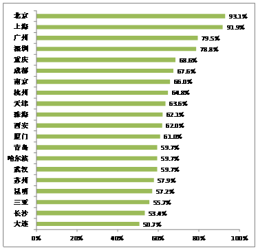 从关于今后想去旅游的城市的调查结果可以看出,知名度和旅游意愿未必完全一致,上海和北京是香港游客今后最想去旅游的两个城市,比例接近5成。其次是哈尔滨、杭州、青岛、三亚等城市,约在2成左右,广州排在第9位,深圳排在第12位。