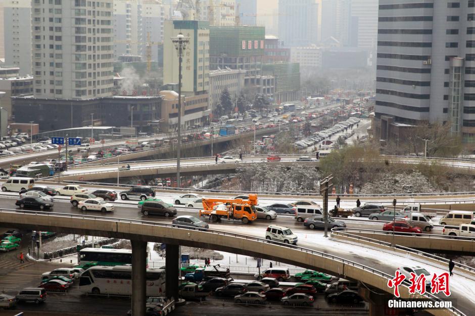 11月24日上午,受降雪天气影响,青海省会西宁市区多条道路结冰后变成了露天“停车场”,市区民众因道路拥堵出行受阻。 中新社发 胡贵龙 摄
