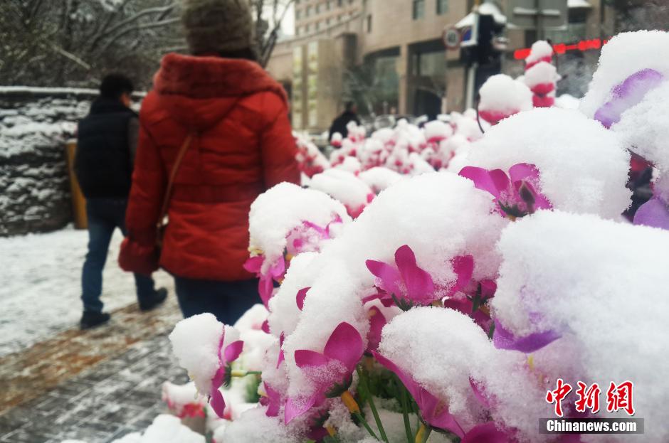 11月24日上午,青海省会西宁已是银装素裹,民众出行时穿着厚厚的冬衣御寒,部分道路出现拥堵。受冷空气影响,青海海东、黄南、海南、果洛等地区自11月23日晚间出现降雪天气,本次降雪中心久治县积雪深度达4.8毫米。 中新社发 胡贵龙 摄