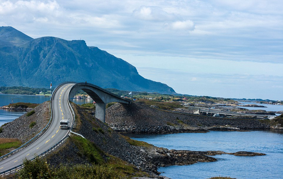 图为挪威大西洋海滨公路的标志性景观斯托尔桑德特桥。(网页截图)
