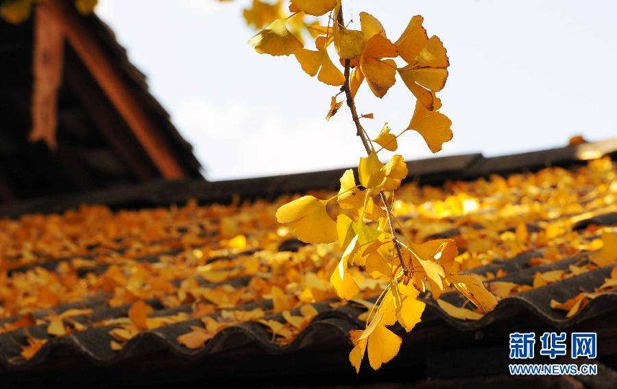 农家小院中的一枝银杏(11月23日摄)。云南省腾冲县固东镇银杏村有820户村民,村里的3000余株古银杏树及1000亩银杏林使该村以“村在林中,林在村中”的自然风光闻名。每年深秋和冬季,房前屋后,黄叶纷飞,异常壮观,灿如黄金的银杏叶掩映着美丽的乡村,游客纷至沓来,休闲观光。新华社记者杨宗友摄