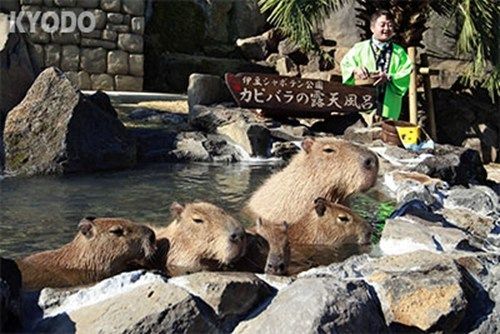 中新网11月24日电 据《日本经济新闻》报道,日本的猴子喜欢在冬天“享受”露天温泉似乎已经被很多人所熟知,不过喜欢温泉的小动物好像还不只是猴子。在位于日本静冈县伊东市的伊豆仙人掌公园,就有同样热衷于在大冬天里泡露天温泉的水豚。