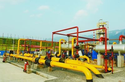 重庆涪陵江汉油田页岩气集输站生产装置。