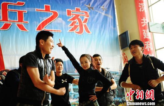 11月25日,兰州火车站“动姐动哥”载歌载舞欢送退伍老兵,退伍老兵含泪告别了自己朝夕相处的战友,奔赴自己新的人生起点。杨艳敏 摄