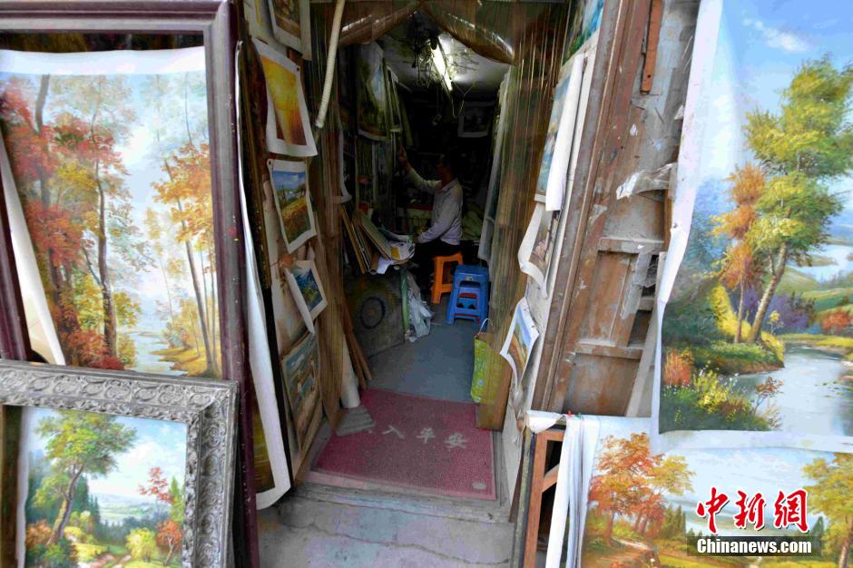 图为厦门乌石浦村,画工在自己狭窄的画室里作画。 张斌 摄
