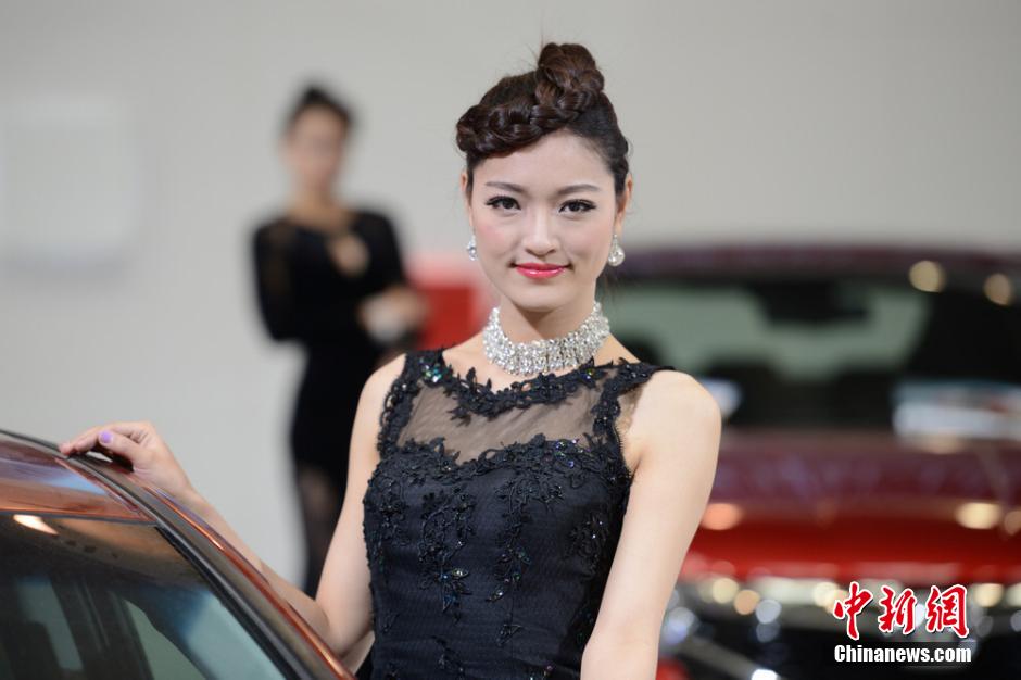 11月21日,在苏州举办的一场购车节上,一拨接一拨的中外美女出现在各个展台,比展出的各种汽车更为抢眼。商家为聚人气纷纷请来靓丽模特助阵,“美女经济”热度不减。图为靓丽模特亮相展台聚人气。 王思哲 摄