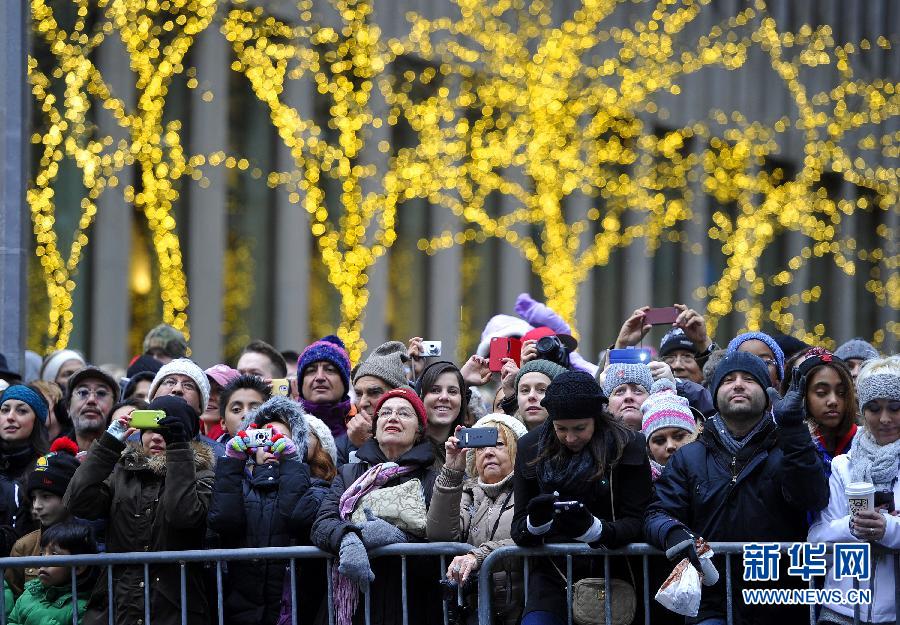 11月27日,在美国纽约曼哈顿,观众冒着寒风观看感恩节庆祝游行。当日,纽约举行第88届梅西感恩节大游行,数百万民众走上纽约街头,欣赏游行表演及各种气球造型、乐队演奏,庆祝感恩节的到来。梅西感恩节大游行始于1924年,是全美规模最大的感恩节游行。新华社记者王雷摄