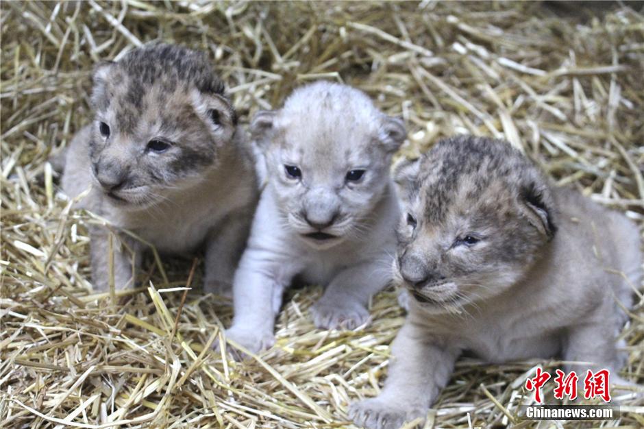 动物园说,狮妈妈一胎生了三只,两公一母,三头小狮体重都超过1.8公斤,其中有一头是白狮。