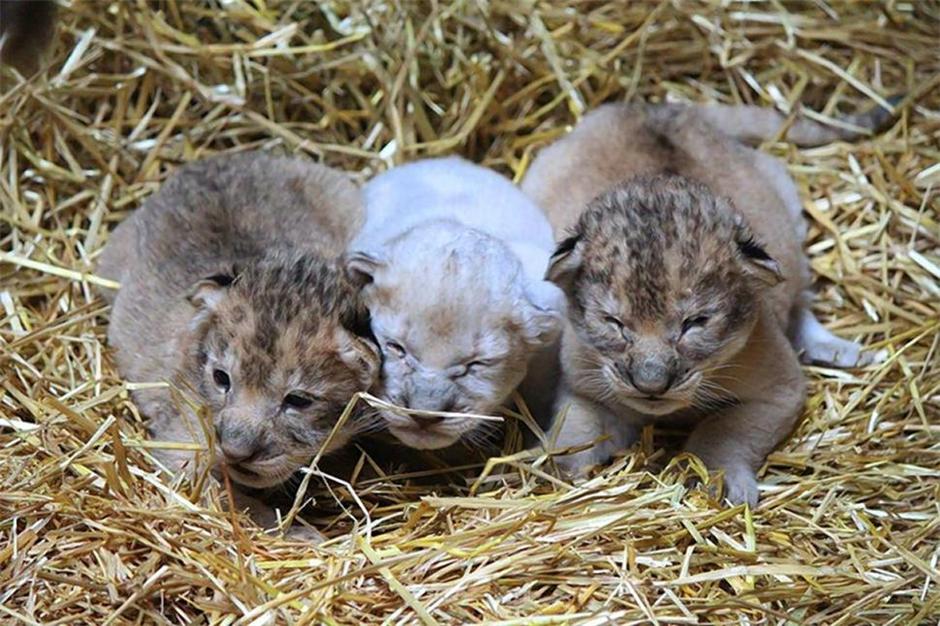 小白狮出现的几率很低,这头白狮是母系还是父系遗传,并不清楚,也说不定父母都有隐性基因。