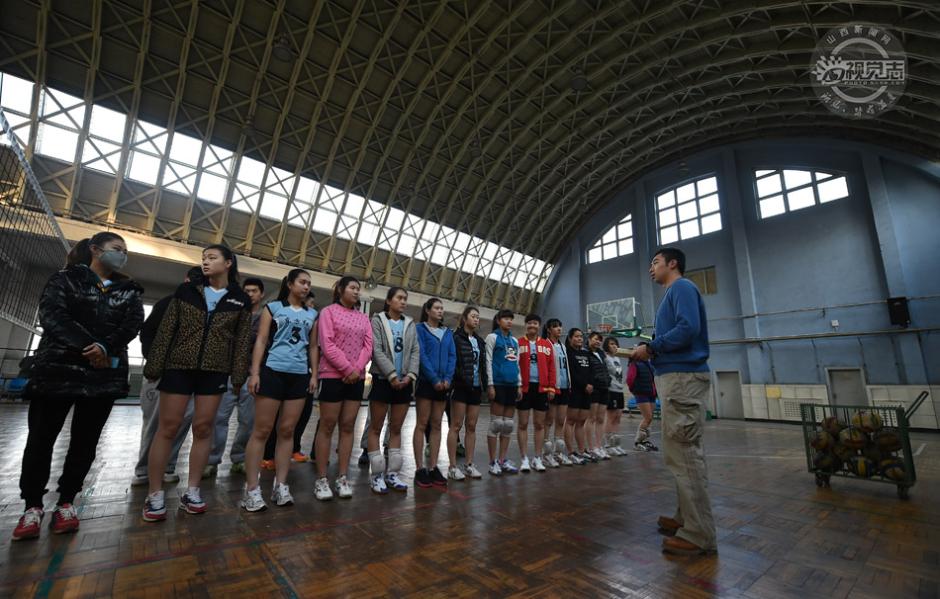 下午4点,山西大学女子排球队开始训练,教练廖鲁頔点名并交代当日的训练计划。图片来源:山西新闻网