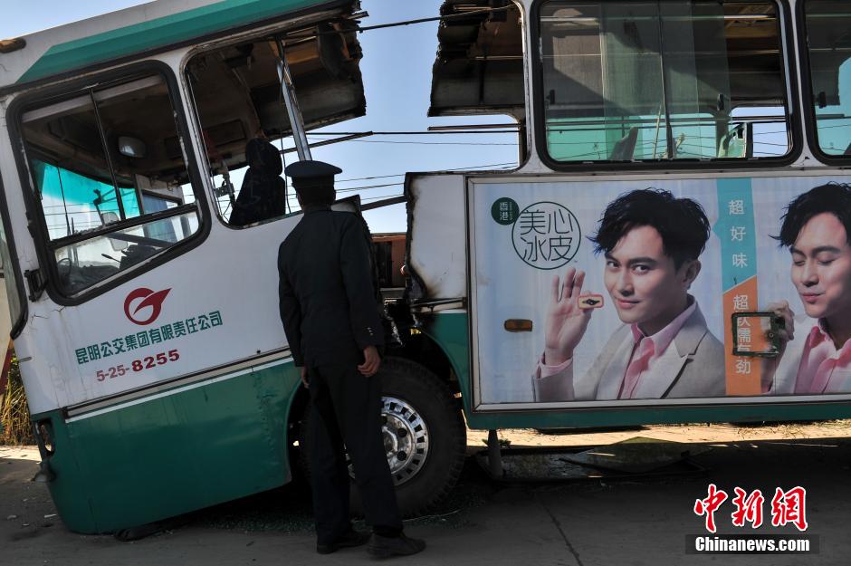 11月27日,昆明城郊云南新源报废汽车拆解中心里,待拆解的报废汽车堆积如山。据该中心陈永林副总经理介绍,自《机动车强制报废标准规定》去年5月实施以来,取消了机动车最高15年的强制报废年限后,报废汽车来源就减少了,再加上国际钢价持续走低,报废汽车业利润也随之降低。据介绍,该中心每月都要为上百辆车进行报废,主要以出售废钢铁盈利。图为待报废的公交车已经被切开。 中新社发 任东 摄