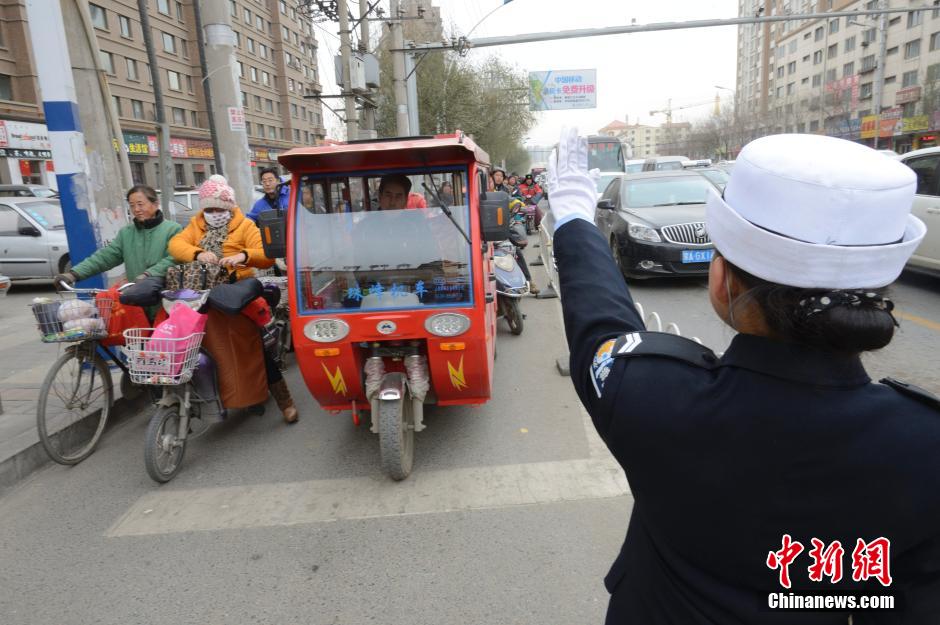 11月27日,小学生交警队街头实训。据悉,呼和浩特在部分小学开展“小小交警”试点,由交警教授交通课程,维持校园附近交通。中新社发 刘文华 摄