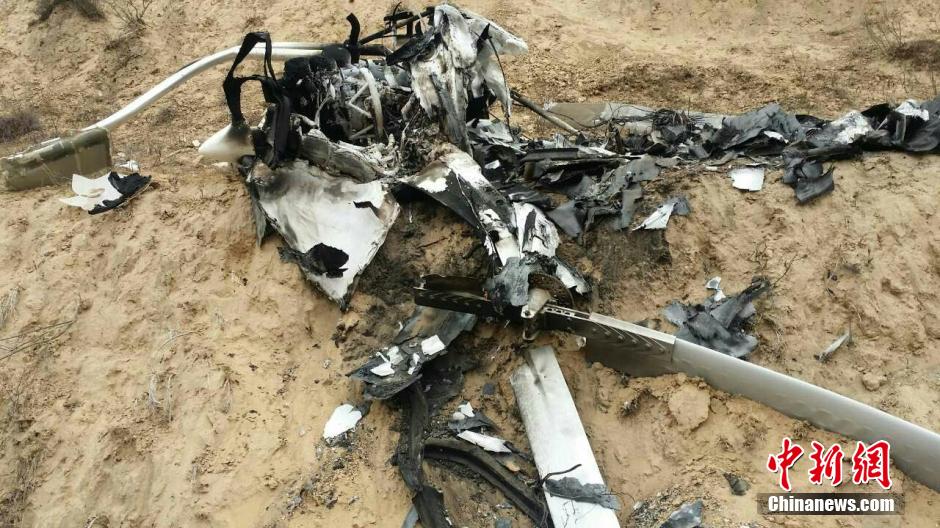 11月27日上午11点10分左右,榆林市航空运动协会所属的一架卡度士自旋翼机,在进行飞行训练时撞到高压线,于横山县塔湾镇陈大梁村境内坠毁,事故造成2名飞行人员受伤,正在医院抢救,未造成地面人员伤亡。中新社发 张远 摄