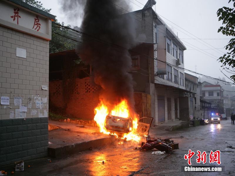 11月27日7时27分,湖北省宜昌市夷陵区发生一起交通事故,一辆小轿车突然失控撞上两辆行驶中的摩托车并引发大火,造成2人受伤。当地公安、消防等部门的紧张处置,成功将险情排除。目前事故原因正在调查中。郑阳 摄