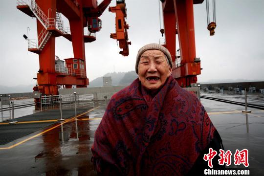 万紫辉老人第一次登上三峡大坝 严晓冬 摄