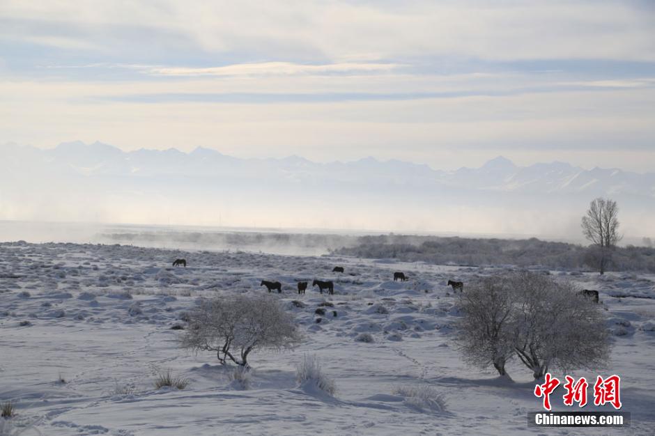 图为新疆昭苏地区连续降温后出现雾淞美景。 张燕 摄