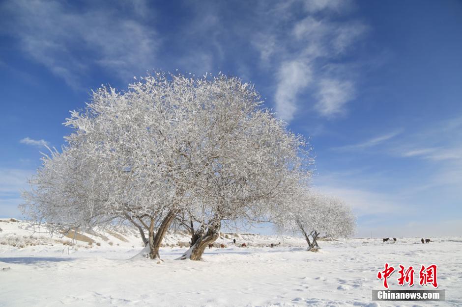 图为新疆昭苏地区连续降温后出现雾淞美景。 张燕 摄