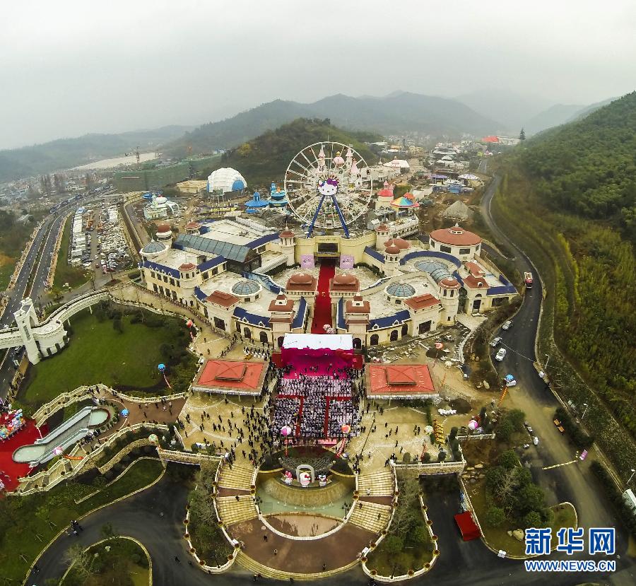 这是从空中俯瞰刚刚竣工完成的国内首座Kitty猫家园(11月28日摄)。当日,位于浙江省安吉县的国内首座Kitty猫家园--Hello Kitty主题乐园正式竣工,并将于2015年元旦正式开业。本次竣工的Kitty猫家园占地面积达1.6平方公里,总投资20亿元,于2012年3月15日项目主体工程正式破土动工,预计建成后年客流量达100万人次以上。新华社记者 徐昱 摄