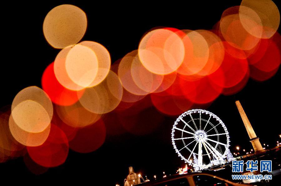 11月27日,法国巴黎协和广场的摩天轮迎接游客。近日,巴黎市点亮香街彩灯,开放香街市场,启动摩天轮、搭建市政厅溜冰场,装饰大型商场橱窗,迎接圣诞和新年的到来。 新华社记者陈晓伟摄