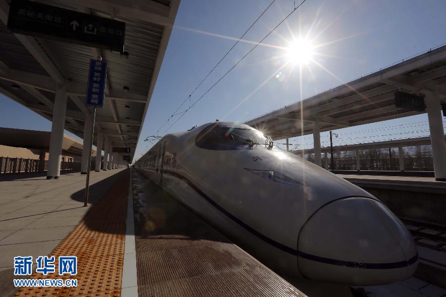 11月27日,一列动车停靠在兰新高铁甘肃嘉峪关南站。随着兰新高铁甘肃段联调联试工作结束,兰新高铁甘肃段顺利转入试验运行阶段,动车“西出阳关”试跑兰新高铁,预计年底全线通车。兰新高铁全长1776公里,横贯甘肃、青海、新疆三地,是中国首条在高海拔地区修建的高速铁路,11月16日,乌鲁木齐南至哈密段正式开通,为年底全线贯通拉开序幕。 新华社发(蔡增乐 摄)