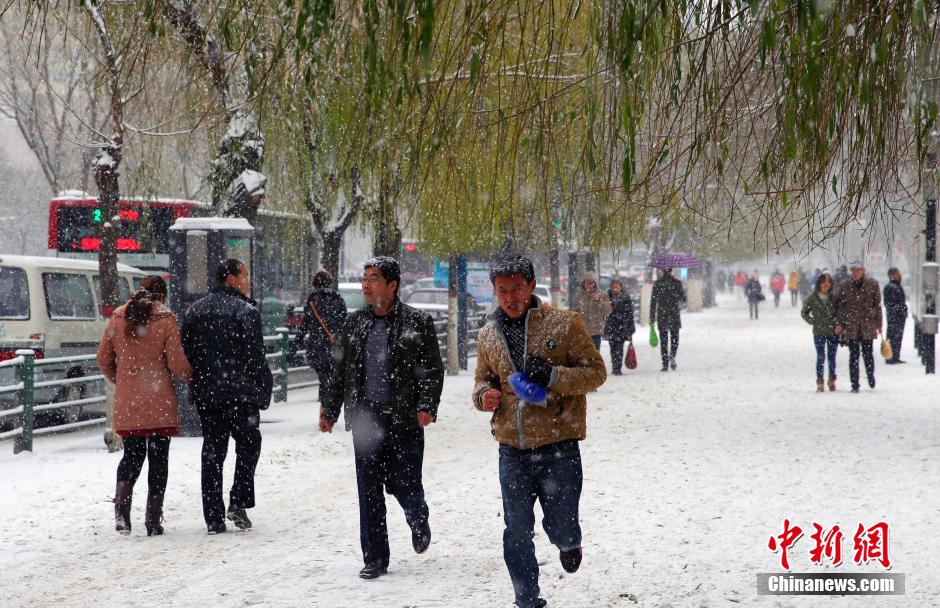 图为西宁市民顶着大雪走在街边。 胡贵龙 摄