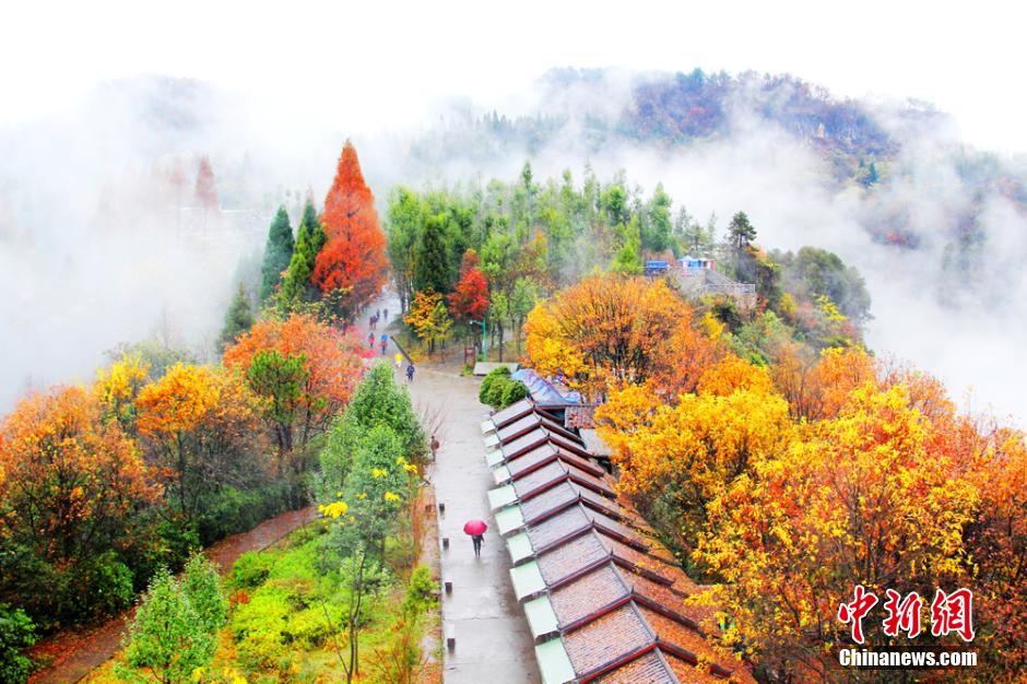 11月29日,世界自然遗产张家界武陵源风景名胜区冬雨霏霏,天子山景区现云雾仙景,群峰时而露出秀美“脸庞”,时而害羞躲在云端,在多彩树木陪伴下构成的一幅幅油画风光,令上千名过往游客大饱眼福,久久不肯离去。邓道理 摄