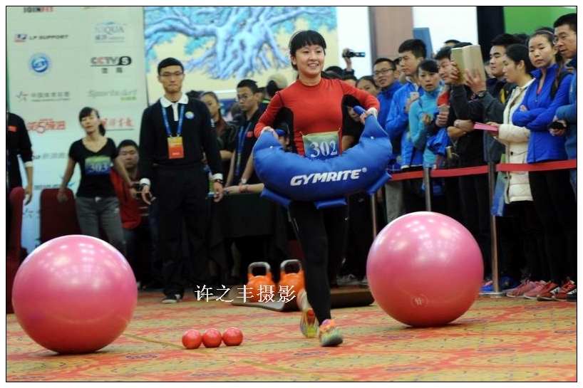 大会进行趣味性的“职业技能竞赛”,竞赛共有来自全国各省市自治区21个代表队的117名优秀职业健身教练以及上百名参会学员同场竞技,展开团体赛和个人赛各个奖项的争夺。团体赛由有理为先、实战为王、极限体能、多才多艺四个竞赛项目和一个加分项组成,比赛采用积分赛制,根据各代表队完成各比赛项目所获得的积分多少进行最终名次排定,个人赛由理论知识、沙包负重快走、健身球掷远、跳箱、攀爬机五个竞赛项目组成,比赛采用限时计时赛制,参赛选手需在5分钟内完成五项比赛内容,最终根据选手完成用时计算个人比赛成绩。