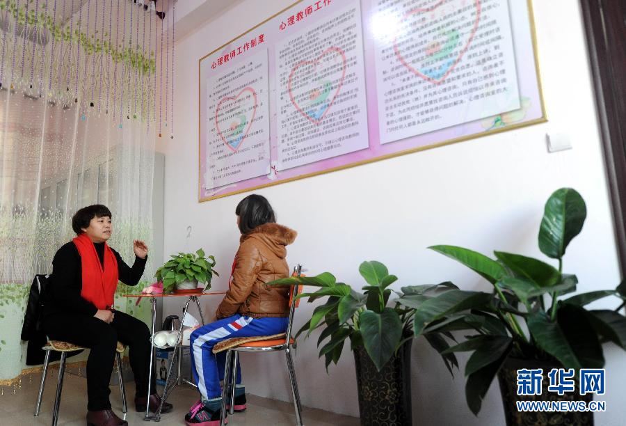12月1日,大城县第三小学心理咨询师对学生进行心理疏导。为提高学生心理调试能力,培养学生阳光心态,河北省大城县第三小学本学期开设的“心灵氧吧”心理咨询室为学生提供了一个倾诉心声、减少烦恼、缓解压力的场所,受到学生和家长的欢迎。新华社记者 李晓果 摄
