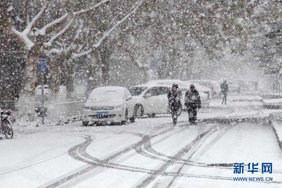 12月2日,在威海环翠区昆明路,行人冒雪出行。当日,受冷空气影响,山东威海降下入冬以来首场大雪,气温降幅达8到10摄氏度,沿海阵风达到11级。 新华社发(刘中华 摄)