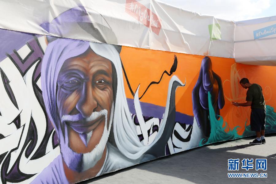 11月30日,在阿拉伯联合酋长国迪拜,一名涂鸦艺术家在进行创作。为庆祝阿联酋建国43周年,来自世界各地的70名街头绘画艺术家近日在迪拜联手打造了一幅长约2200米的涂鸦作品,创下新的吉尼斯世界纪录。该作品位于迪拜朱美拉海滩公园附近,创作主题为“我们的历程”,通过涂鸦表现阿联酋的重要历史时期、建设成就和发展前景。新华社记者李震摄