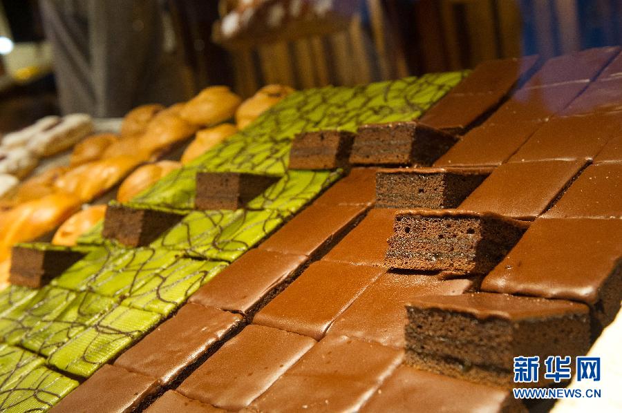 这是12月2日在奥地利首都维也纳市政厅广场圣诞市场上拍摄的蛋糕。每年圣诞节前的几个星期,奥地利维也纳市政厅广场的圣诞市场都热闹非凡。市民和游客在靓丽彩灯下漫步,大小摊位间各色美食、美酒散发出的香气以及圣诞糖果绚丽的色彩,烘托出日益浓重的圣诞气氛。新华社记者钱一摄