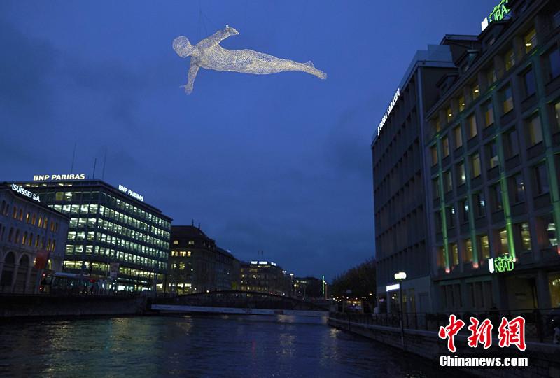 不过,很多人应该很想知道,这个雕塑到底是怎么悬到空中去的呢?
